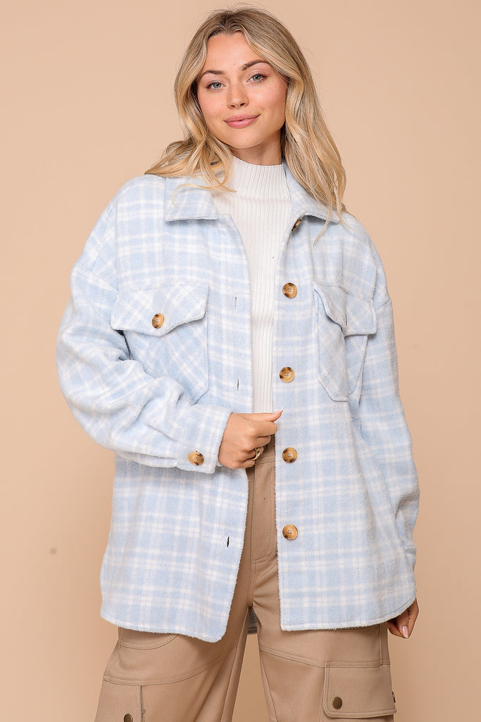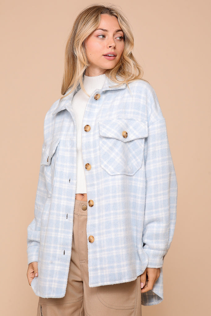 Blue Spring Vibes Plaid Shacket. Relaxed Fit.