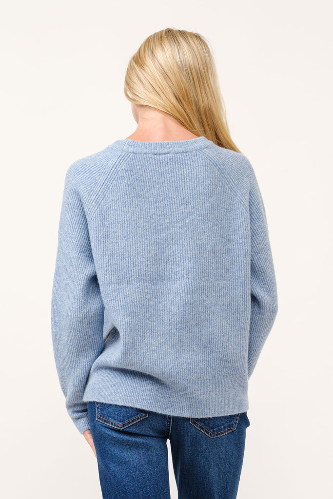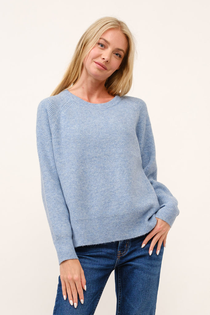 Blue Soft Knit Ribbed Sweater