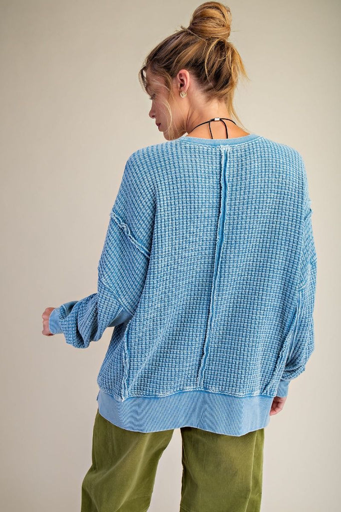 Day Blue Thermal Peace Sign Pullover. Relaxed Fit.