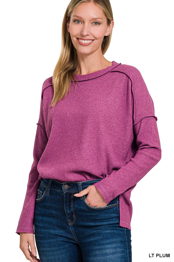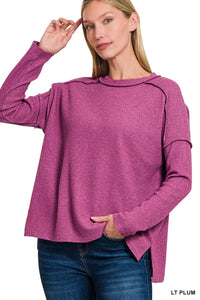 Linnie Light Plum Hacci Top. Relaxed Fit.