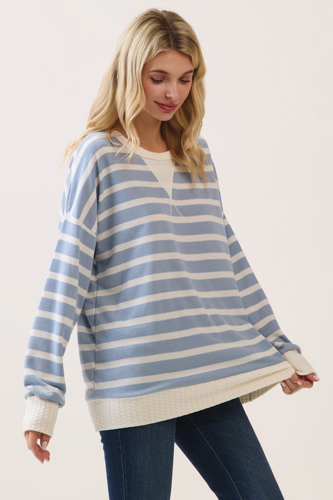 Blue & White Striped Pullover Top